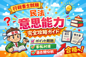 行政書士試験の民法で頻出の「意思能力」は、条文だけだと掴みにくく、苦手になりやすいテーマです。 この記事では、意思能力の定義・判断の考え方・混同しやすい概念(行為能力/責任能力)・過去問での出題パターンまで、得点につなが […]