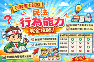行政書士試験の民法で「行為能力」は頻出テーマです。制限行為能力者制度は日常生活にも関係が深く、実務でも避けて通れません。この記事では、行為能力の基本、制限行為能力者の類型(未成年者・成年被後見人・被保佐人・被補助人)、そ […]