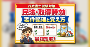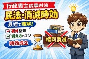 こんにちは。行政書士試験の民法の中でも、「消滅時効」は多くの受験生がつまずきやすい分野です。条文を読んでも抽象的で、問題になるとどこを見ればいいのかわからない。そんな感覚を持っていませんか。 この記事では、消滅時効を 要 […]